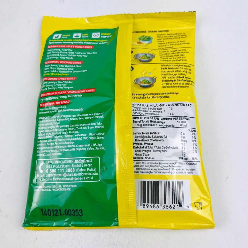 Bumbu instant, Racik sayur asem, sop, lodeh, ikan & ayam goreng, tumis, nasi goreng, dan tempegoreng